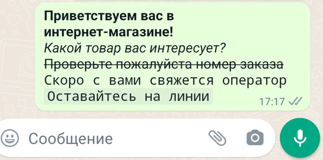 Пример текста сообщения с форматированием для WhatsApp: